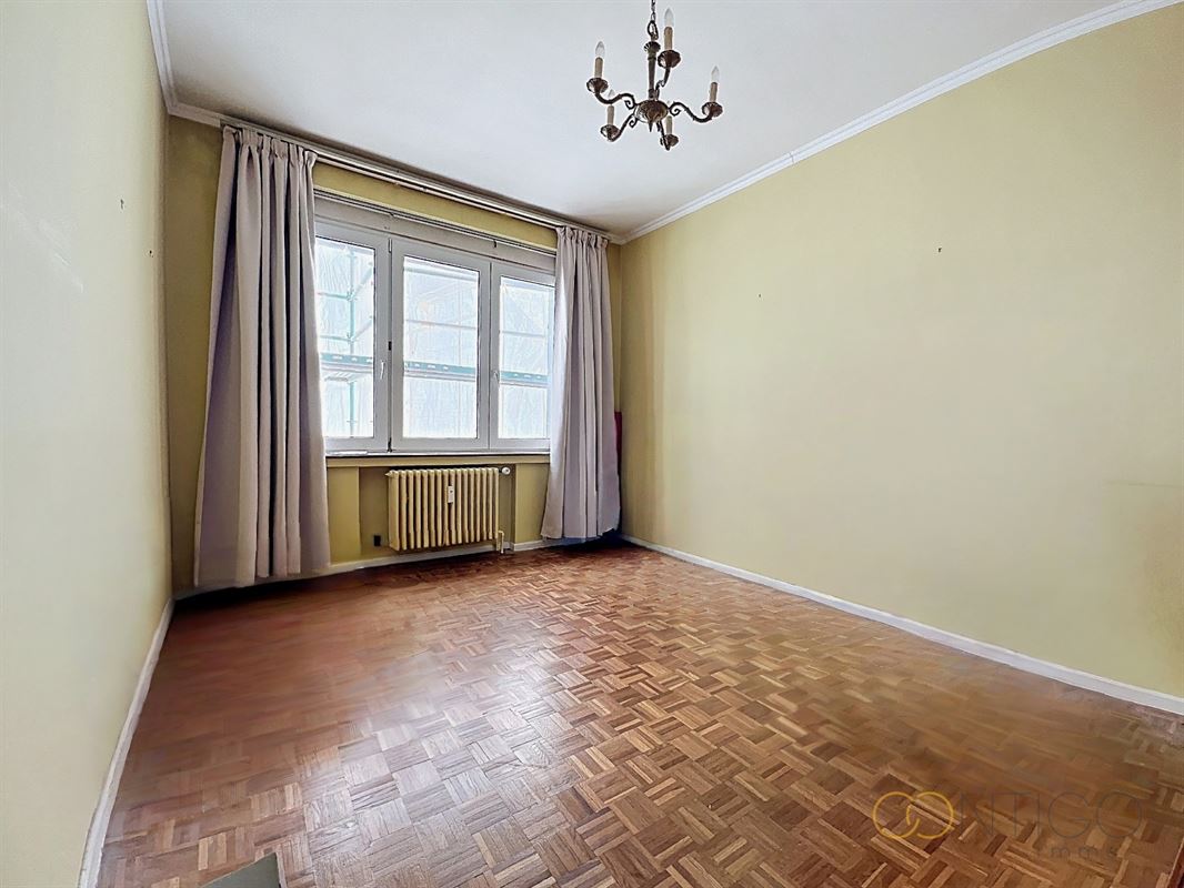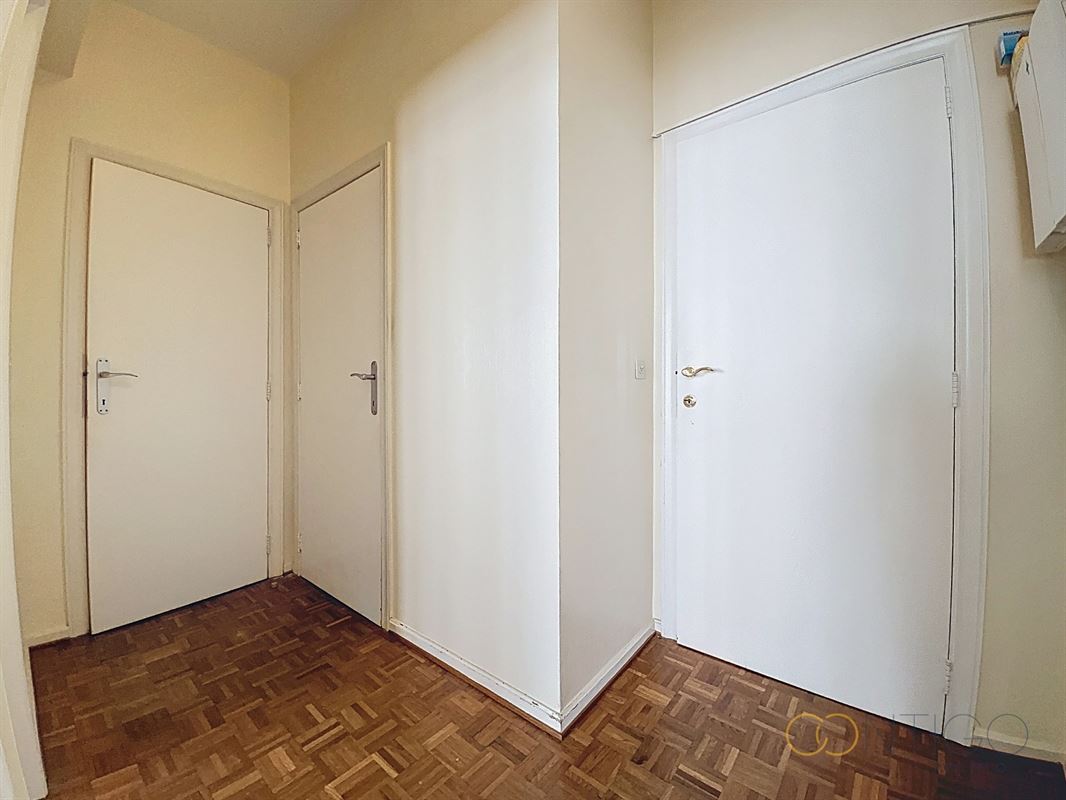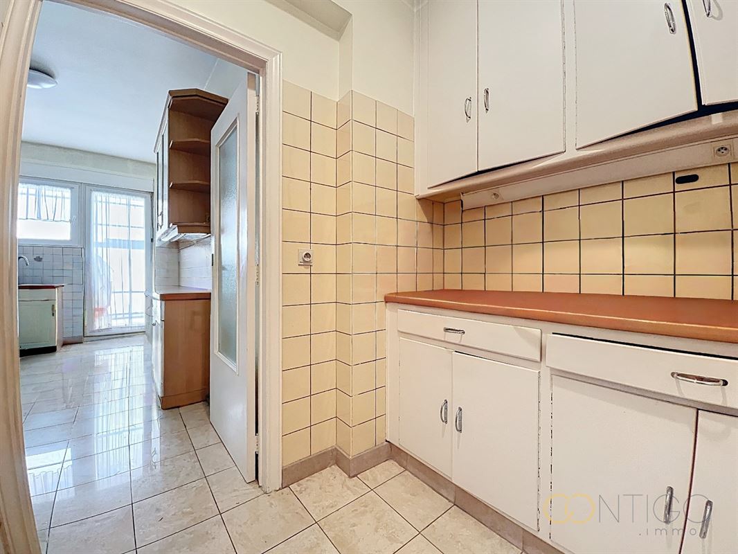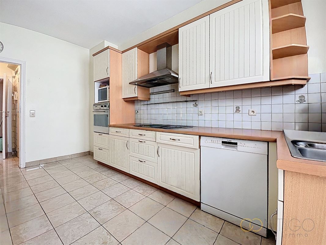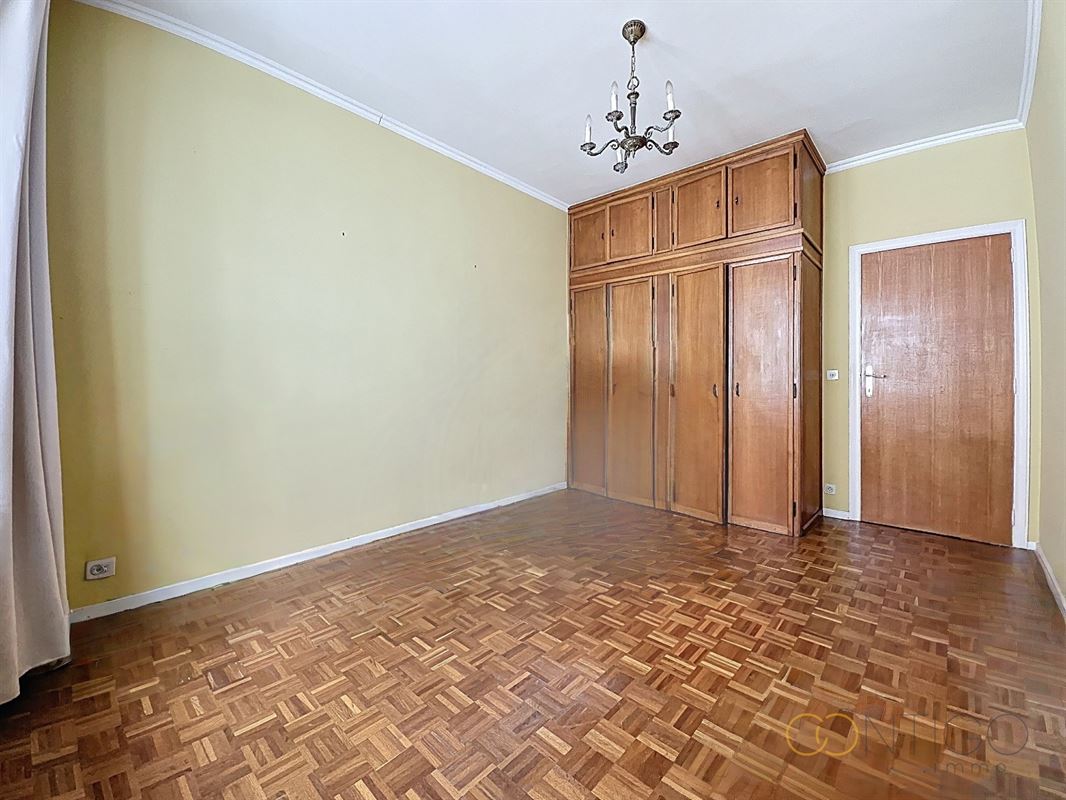 Situé au 6ième étage d’un immeuble de caractère, l’appartement s’ouvre sur un vaste hall d’entrée (18m²) menant à un lumineux séjour et salle à manger (52m²), avec accès à une agréable terrasse orientée à l’est (+-10m²). La cuisine séparée (12m²), fonctionnelle et bien agencée, dispose également d’un accès direct à une seconde terrasse orientée à l’ouest (+-6m²) et est complétée par une buanderie (6m²). L’espace nuit se compose de deux chambres confortables (14m² et 15m²), dont l’une avec accès à la terrasse et l’autre avec placards intégrés. Le hall de nuit (5m²) dessert également un dressing (3m²) ainsi qu’une salle de douche (5m²), rénovée vers 2015. L’appartement offre de nombreux espaces de rangement et dispose de deux WC séparés. Deux caves viennent compléter ce bien, ainsi qu’un box de garage proposé au prix de 45.000€.